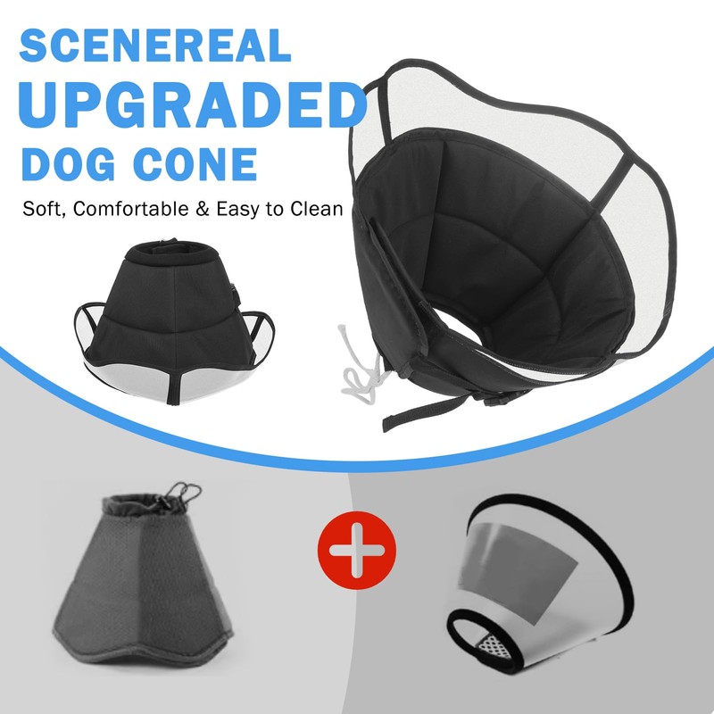 SCENEREAL Dog Cone for Dogs After Surgery, Adjustable Cone Collar Alternative to Stop Licking for Wound Care, Spay, Neuter, Soft Recovery Cone Neck E-Collar for M L Size Dog, Black L