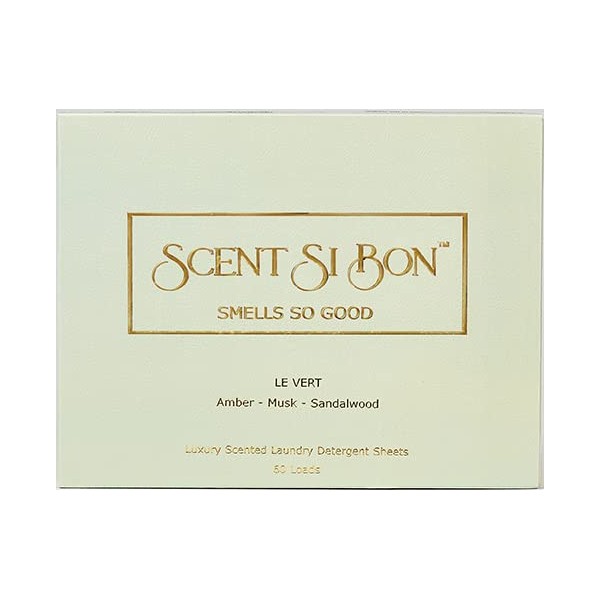 Scent Si Bon Luxury Scented Laundry Detergent Sheets, 60 Loads, Le Vert Scent Inspired by Iconic Perfumes, Amber, Musk, Sandalwood, Eco-Friendly Formula, Biodegradable Detergent Strips