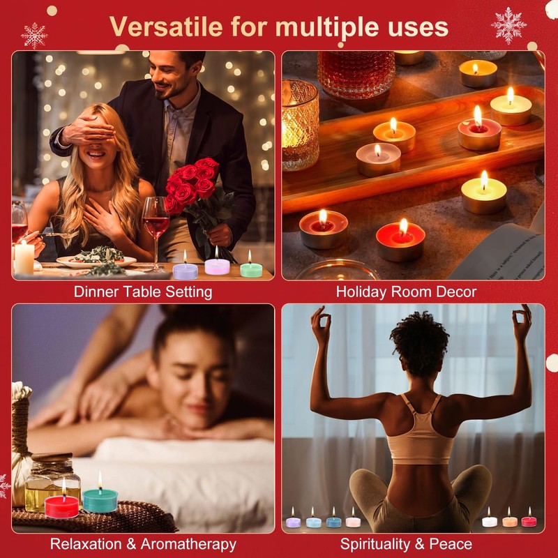 - Safe and pleasant scented candles: please use the candles inside the glass container. These scented tea lights are made from high quality soy wax and selected ingredients to ensure a pure, even and room-filling fragrance.