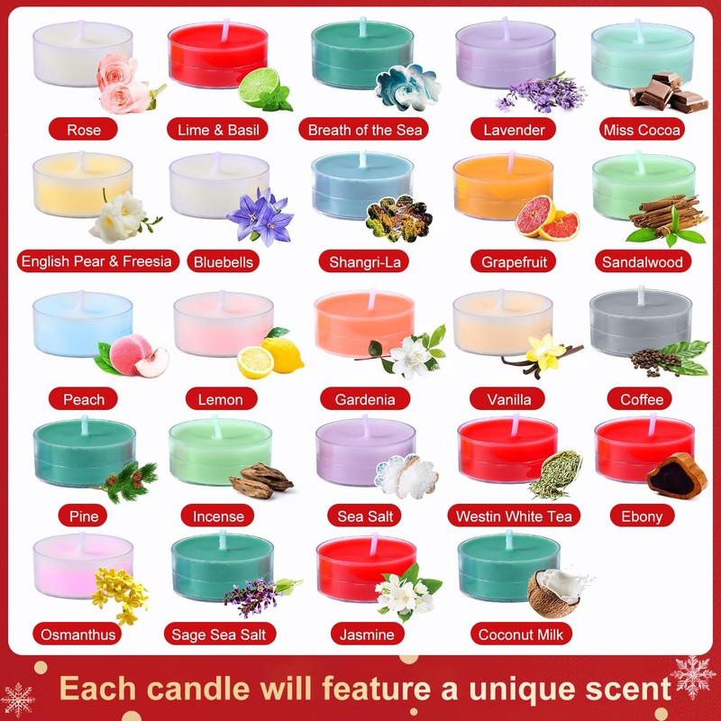 Scented Candles Advent Calendar 2024, 24 Tea Light Scented Candles, Christmas Calendar Gift for Mothers, Daughters, Sisters