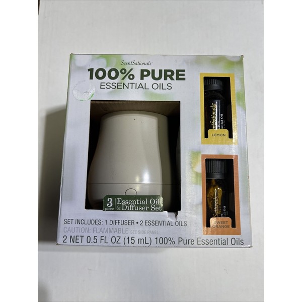Scentsationals 3 Pc Diffuser And Essential Oil Set NEW In Box Lemon Orange