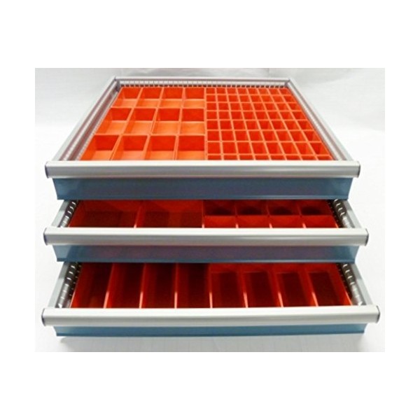 Made of high impact polystyrene (HIPS), these red plastic boxes are ideal for sorting and storing small parts. Boxes slip in and out of drawers for easy loading and dispensing. MADE IN USA by Schaller Corporation, Natick MA Schaller Red Plastic Boxes