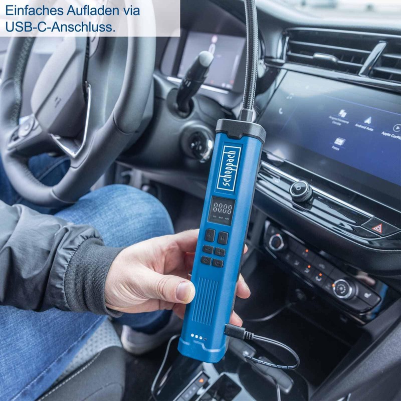 Scheppach Akku-Handkompressor CAP150-4V | 10,3 bar | 3,7 V | 3 Ah Akku-Kapazität | LCD-Display | LED-Leuchte | USB-C Anschluss | inklusive umfangreichem Zubehör für sofortigen Gebrauch