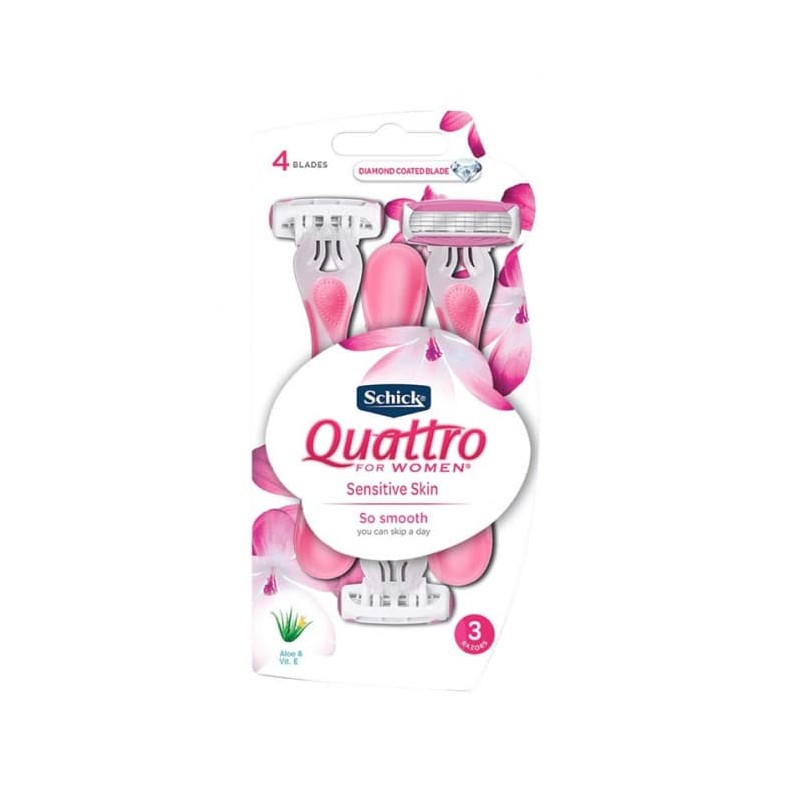 Schick Quattro for Women Disposable Razors are designed with 4 ultra-thin blades and diamond coating for incredible closeness and a long-lasting shave so you can skip a day.