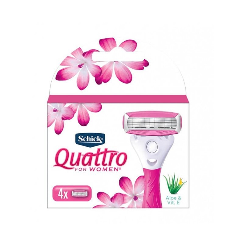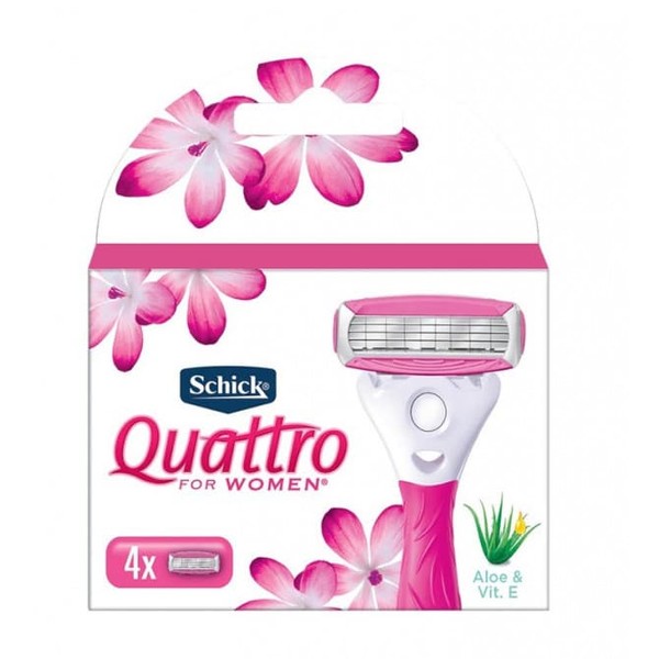 Schick Quattro for Women refills are specifically designed for a woman's body. With their pivoting, 4 ultra-thin blades the razor provides flexibility and an effortless glide along the contours of your legs and body. The conditioning strip enhanced with Aloe & Vitamin E help to reduce irritation, for a shave so smooth you can skip a day!