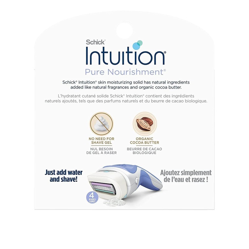 - NO NEED FOR SHAVING CREAM or SHAVING GEL — Lather and shave in one easy step with the Schick Intuition Pure Nourishment Refills