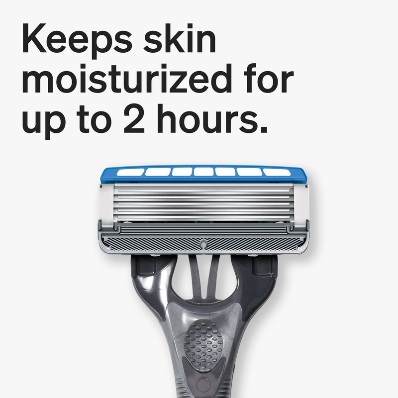 - Five ultra glide blades with skin guards, reduce friction between the skin and the cartridge for a less irritating shave