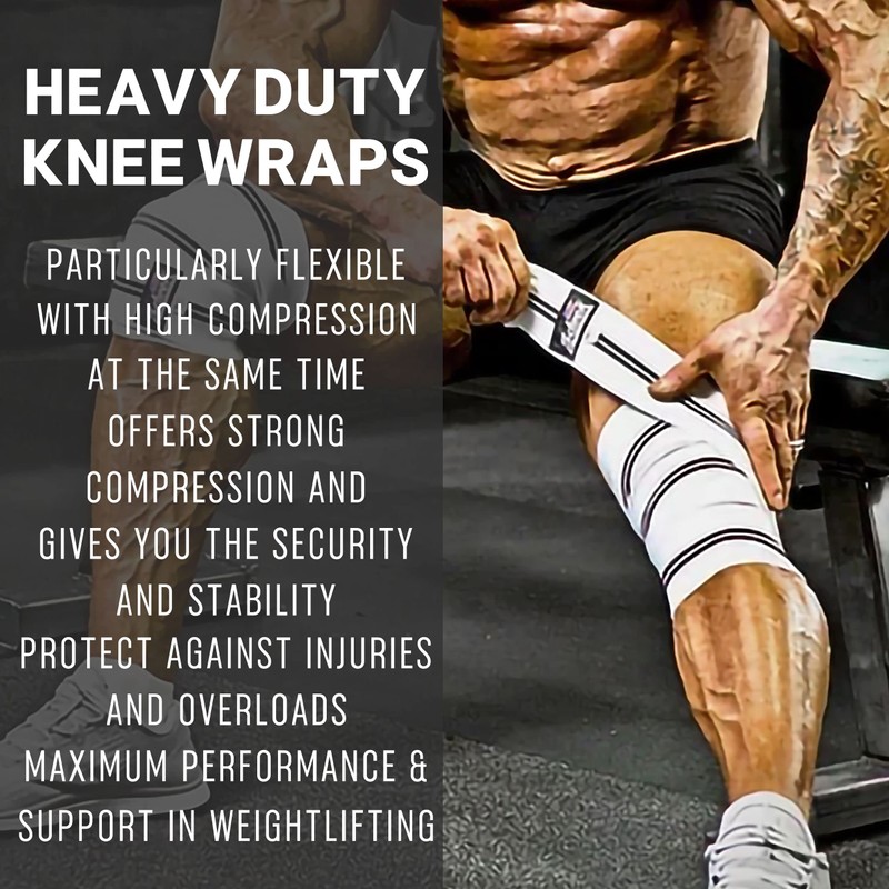 - Wraps provide maximum knee support with EXTRA heavyweight cotton elastic