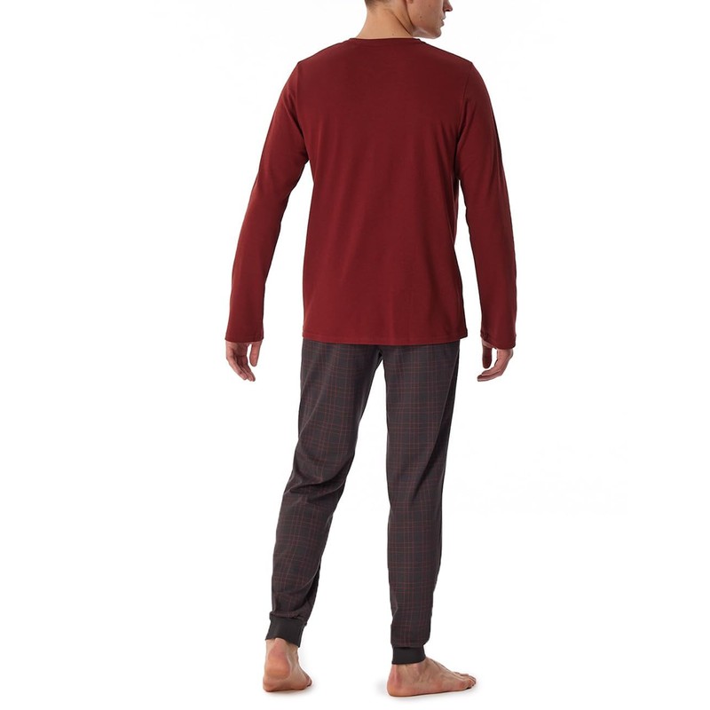Schiesser Men's Long Pyjamas with Button Placket, Warm Cotton-Interlock Pajama Set, Terracotta, 60