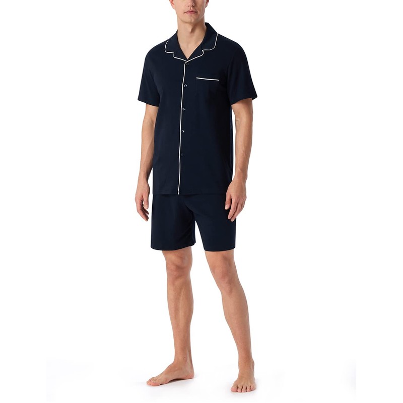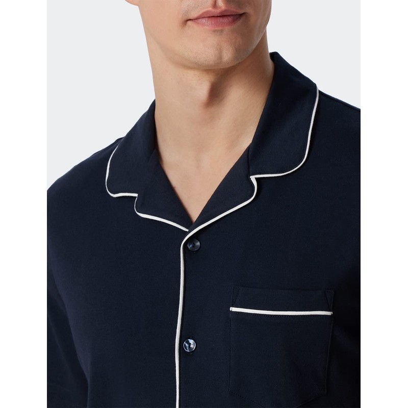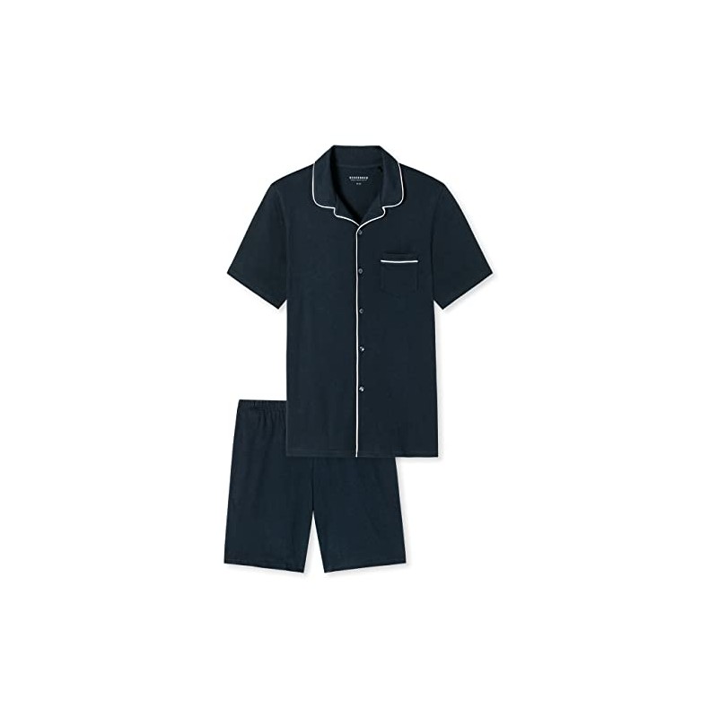 Schiesser Men's Short Pyjamas with Buttons Warmer Cotton - Fine Interlock, Dark Blue_179297