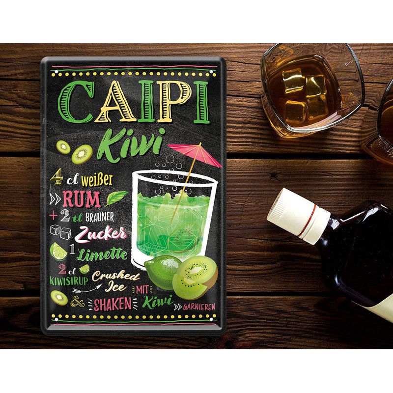 Schilderkreis 24 – Tin Sign Cocktail Recipe Decoration Bar Kitchen Pub Counter Gift Idea Birthday Christmas Long Drink Tonic Spirits Drinker 20 x 30 cm (Caipi Kiwi)