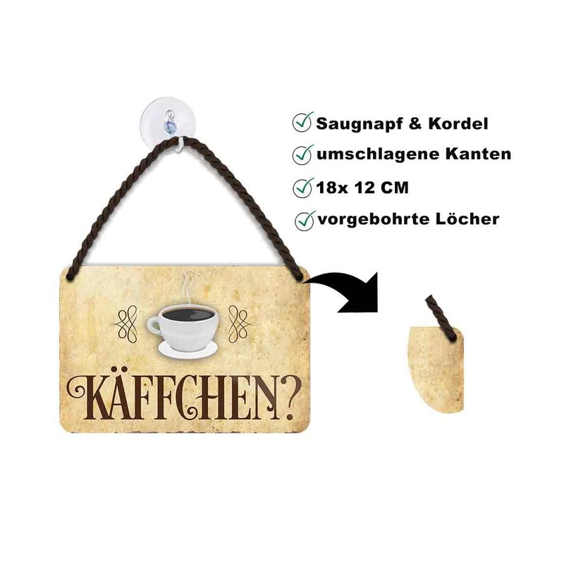 schilderkreis24 Tin Sign Funny Coffee Saying "Käffchen?" Decorative Sign Cafe Restaurant Bar Cafeteria Bistro Gift Idea Retro Kitchen Gift Birthday Christmas 18 x 12 cm