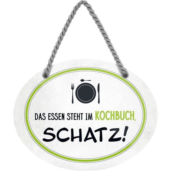 schilderkreis24 Tin Sign Funny Saying "Das Essen steht im Kochbuch, Schatz!" ...