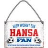 schilderkreis24 Tin Sign Here Lives A Hansa Fan Hanging Sign for Football Enthusiastic Decorative Item Sign Funny Gift for Birthday Christmas Wine Cellar Wine Bar Wine Arbour 18 x 12 cm