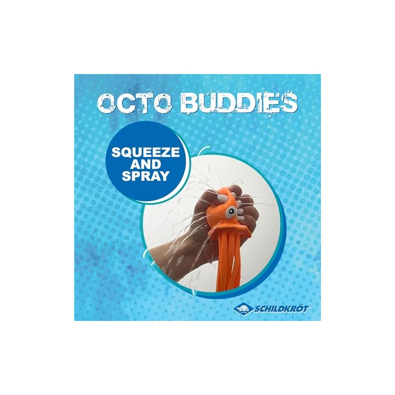 - Water bomb effect: squeeze the Octo Buddies, soak up water, throw and let it spray. A foam core absorbs water like a sponge and releases it back when thrown through the small openings