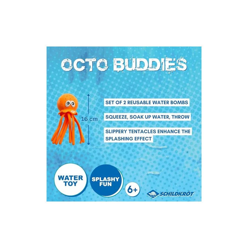 - OCTO BUDDIES - Immerse yourself in water fun with the set of 2 "reusable" water bombs in a fun octopus shape. Dimensions: 16 x 7 cm