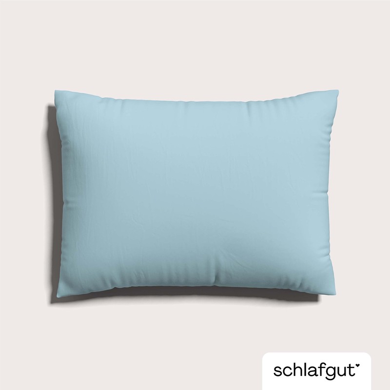 schlafgut Knitted Jersey Pillowcase 60 x 80 cm Blue Light Plain Soft Premium Pillowcase Single, Wrinkle-Free with Elastane