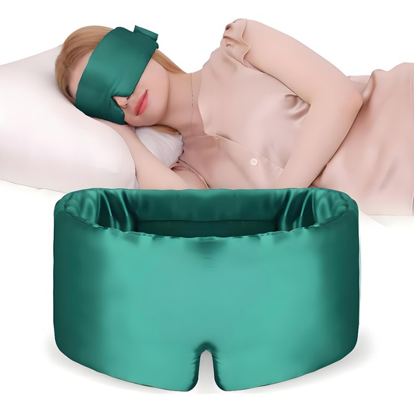 Schlafmaske aus 100 % Maulbeerseide, Augenmaske für Damen und Herren, mit verstellbarem Band, für Seitenschläfer, Verdunkelung, Schlafmaske für Reisen, Ruhe und Büro, große Größe, Grün