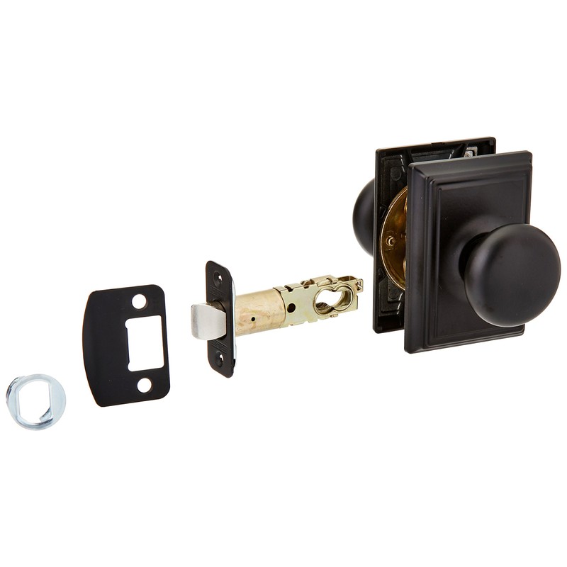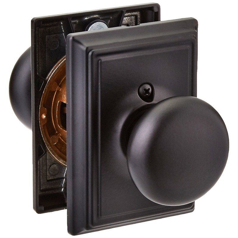 Schlage F10-PLY-ADD Plymouth Passage Knobset with Decorative Addison Rose from t, Matte Black