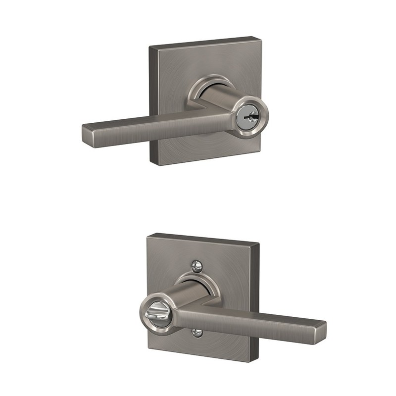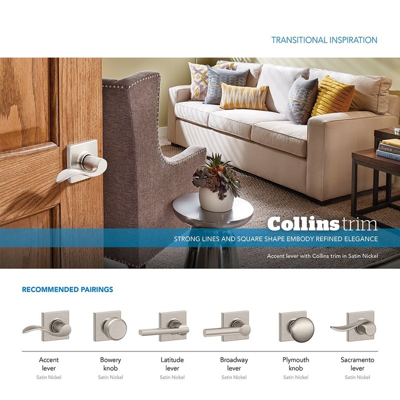 SCHLAGE F51A LAT 619 COL Latitude Lever with Collins Trim Keyed Entry Lock, Satin Nickel