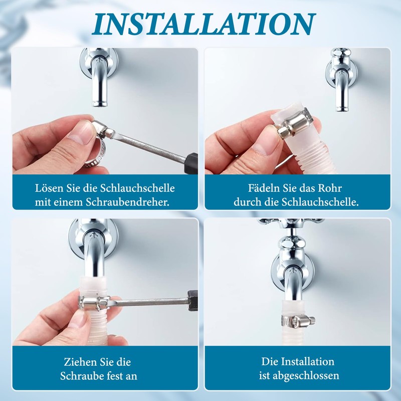 - [Starke Verbindungskraft] Unsere edelstahl schlauchschellen set verfügen über ein gezahntes, schraubenartiges Band für hohe Zugfestigkeit. Das Drehmoment ist zudem höher als bei herkömmlichen Schellen, wodurch sie höherem Druck und Belastung standhalten. Dies verhindert ein Lösen und Verschieben der Verbindung und erhöht die Sicherheit und Zuverlässigkeit