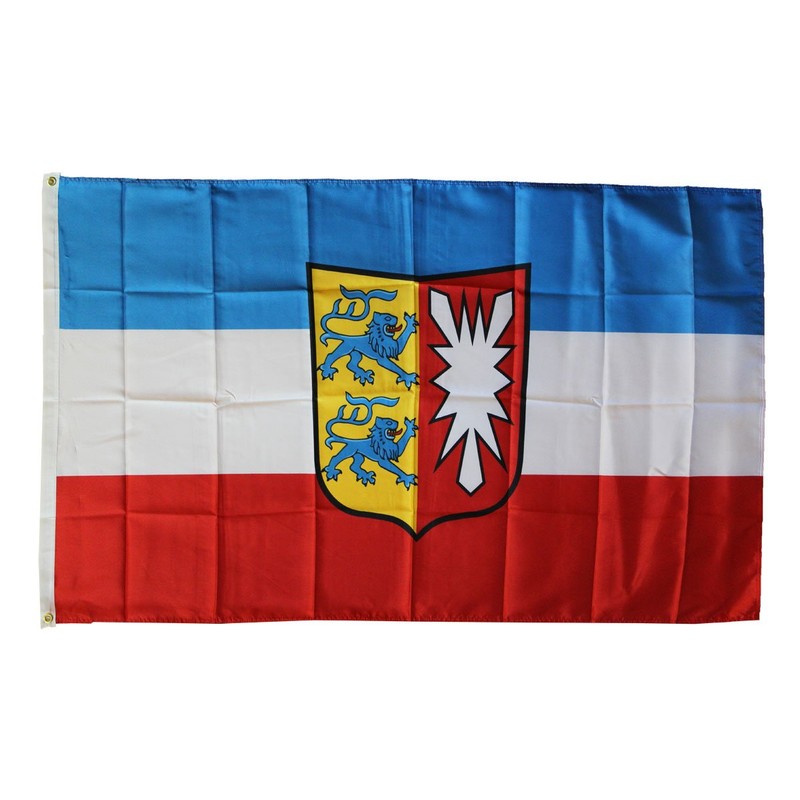 Made of a high quality polyester material, our Dura-Poly Schleswig-Holstein flag measures 3' x 5' and includes vivid colors and an accurate design. Screen-printed on a durable 150 denier shiny polyester material and finished with a double stitched hem, this flag features a white fabric header with two brass grommets on the 3' side for easy display. The flag is best used indoors but can withstand occasional outdoor use. The authentic design is based on information from official sources.