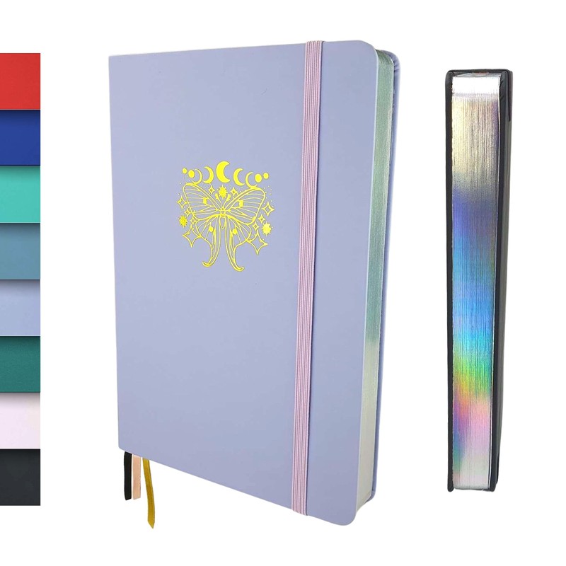 Schloss Planner A5 Bullet Journal | 180 g/m² Extra Thick Bamboo Paper | 160 Pages | Dotted / Dot Grid | Sustainable Notebook/Diary | Silver Book Cut (Butterfly, Lavender)