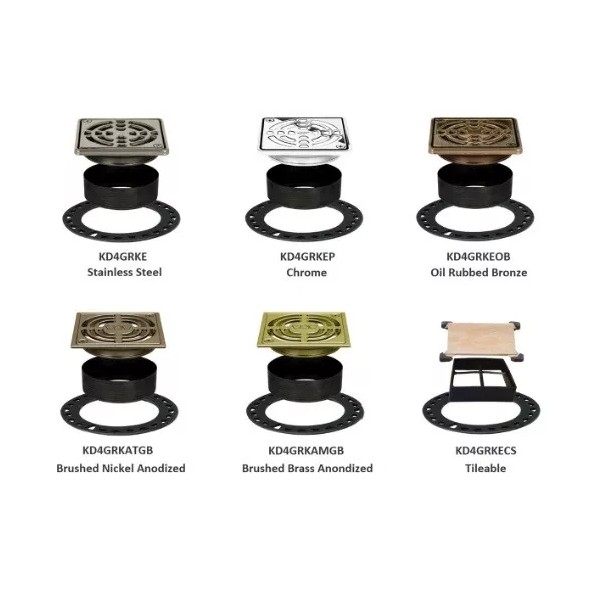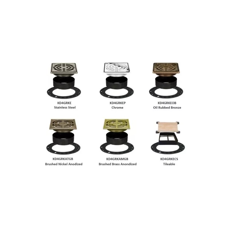 The Schluter Drain Grate Kits work in conjunction with Schluter Kerdi-Drain Flange Kits along with Schluter Kerdi Shower kits to provide the drain grates. These 4" Kerdi-Drain Grate Kits are available in a variety of finishes for personal touch with every shower installation. The grate assembly consists of a height adjustment collar, lateral adjustment ring, and drain grate or covering support. The grates are installed in conjunction with a height adjustment collar and lateral adjustment ring to allow for simple and convenient adjustment when setting the tile. Looking for a Schluter Grate design or finish you don't see here? Contact us directly for special order availability.