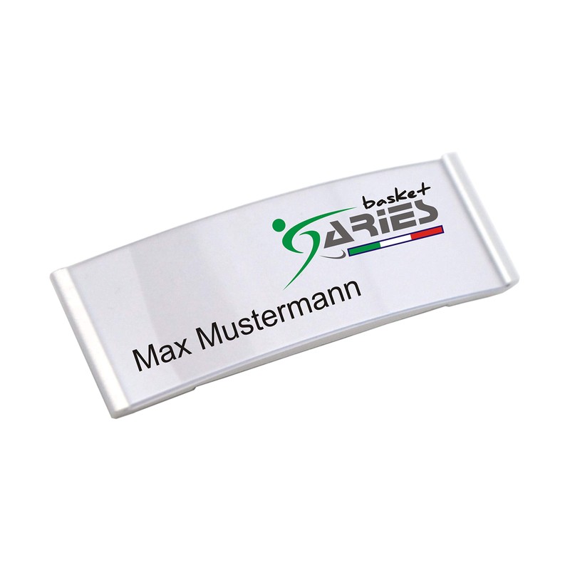 - Trendy name plate, horizontally curved, colour: silver