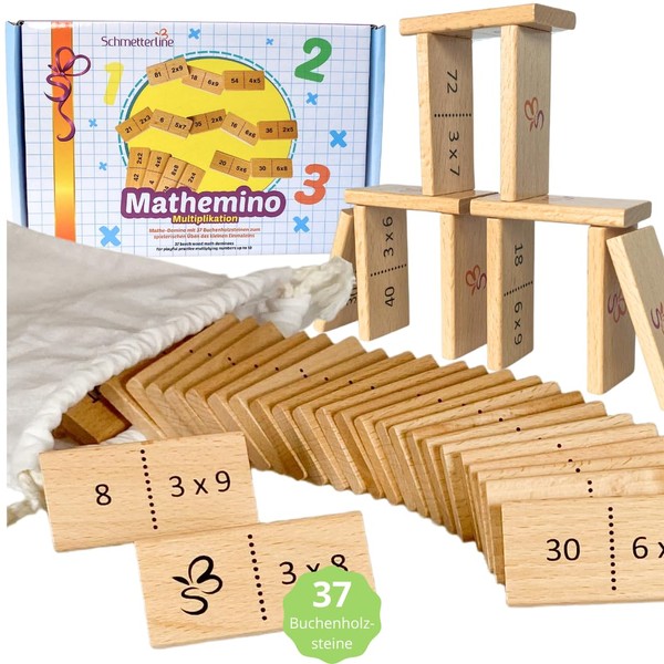SCHMETTERLINE® Math Dominoes 1x1 Learning with Fun - Funny Computing Game from 7 Years (2nd / 3rd Grade) Math Game Mathemato (Small Multiplication Table)