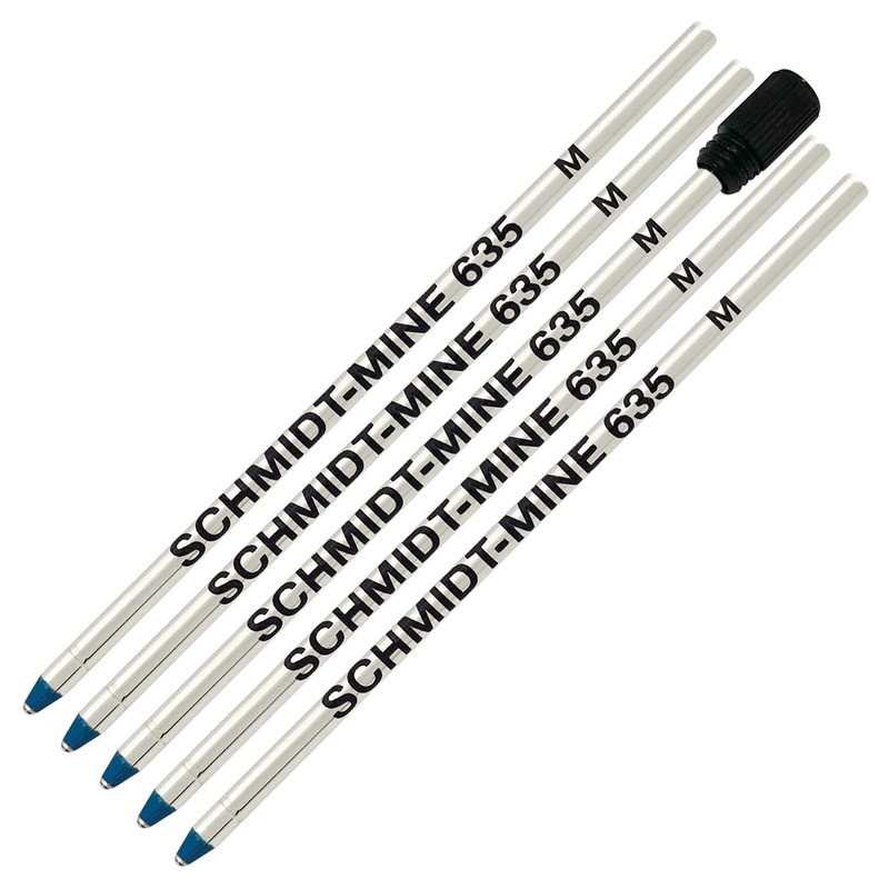 - Schmidt 635 D1 Mine Ballpoint Refill - Blue Ink - Medium Tip 0.7mm - Pack of 5 (Includes 1 Plastic End Cap)