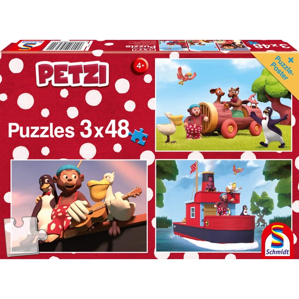 Schmidt Spiele Jigsaw Puzzle 56231 Petzi 3x48 piece on off on an Adventure Children's Puzzle Colourful