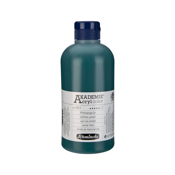 - Akademy acrylic colour: phthalo green in 500 ml bottle, fine artist acrylic paint, ideal as an introduction to acrylic painting, brilliant, glazing, perfect for mixing many other shades and suitable for all acrylic techniques and mixed media.