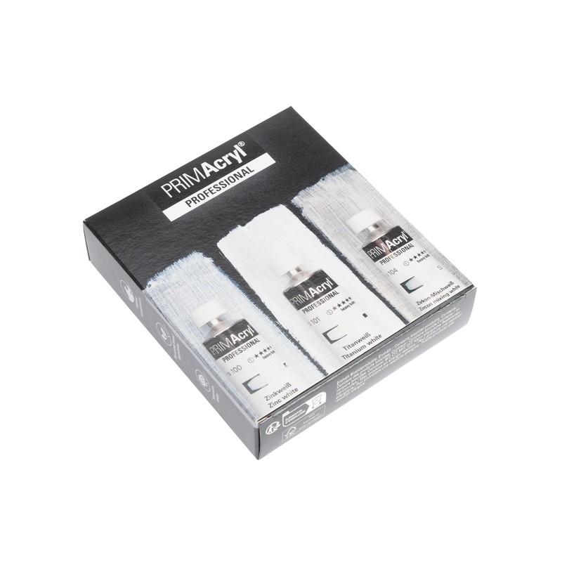 Schmincke - PRIMAcryl Professional® Finest Premium Acrylic Paints, Special Set White Tones, 3 x 35 ml, 73731097, Cardboard Set, Highest Pigmentation, Brilliance, Yield, Microplastic-free Paint