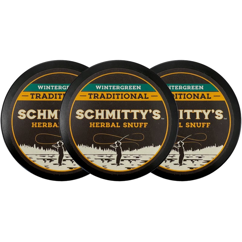 - 3 Cans of Schmitty's Herbal Snuff Wintergreen with 1 DC Crafts Nation Skin Can Cover