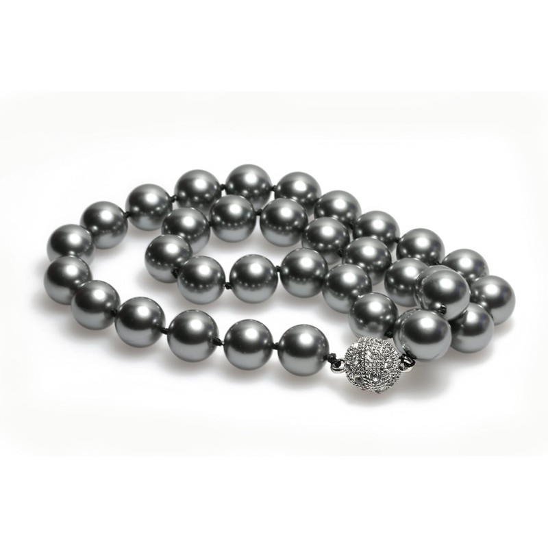 Schmuckwilly mk0015z Women's Shell Pearl Necklace with Magnetic Clasp, Real Shell, Grey, Silver Plated