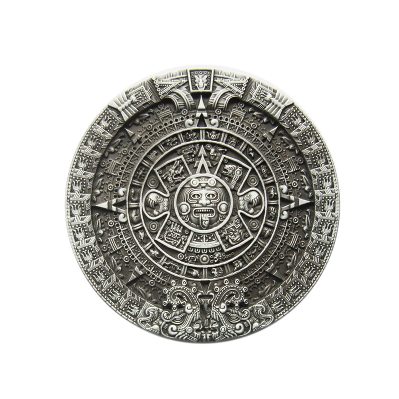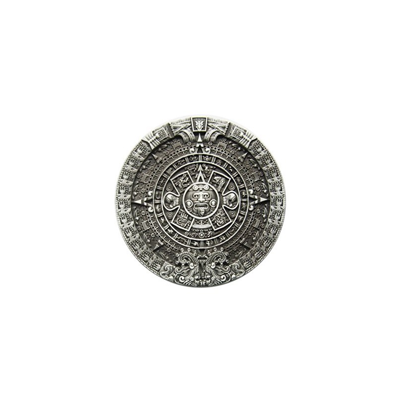 Schnalle123 Belt Buckle Aztec Maya Maya Calendar 3D Look for Interchangeable Belt Buckle Buckle Model 102, silver