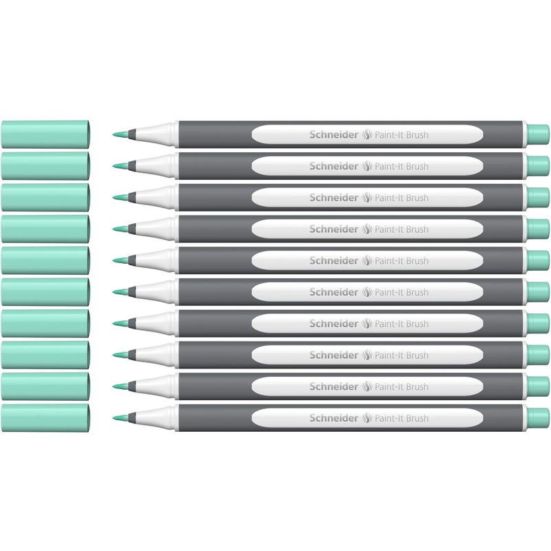 Schneider Brushpen Paint-It 070 (Premium Brush Pens with Flexible Tip and Bright Colours for Calligraphy, Hand Lettering and More) Pack of 10 Pastel Turquoise