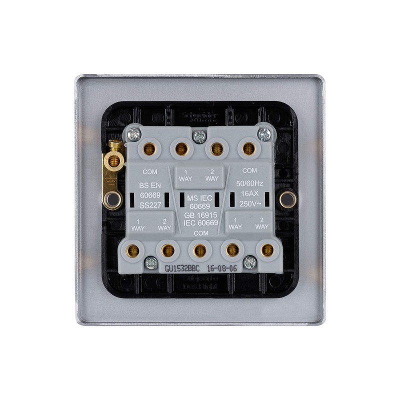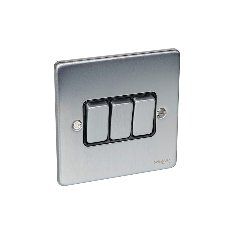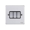 Schneider Electric GU1532BBC Ultimate Low Profile brushed chrome Black insert 3 gang 2 way 16AX plate switch