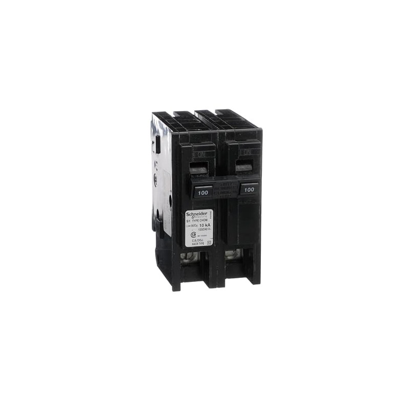 Schneider Electric - Homeline Mini Circuit Breaker, 100A, 2 Pole, 120/240VAC, 10kA AIR, Standard Type, Plug-in, UL, HACR Rated Breaker Application, Screw Clamp Terminal Electrical Connection