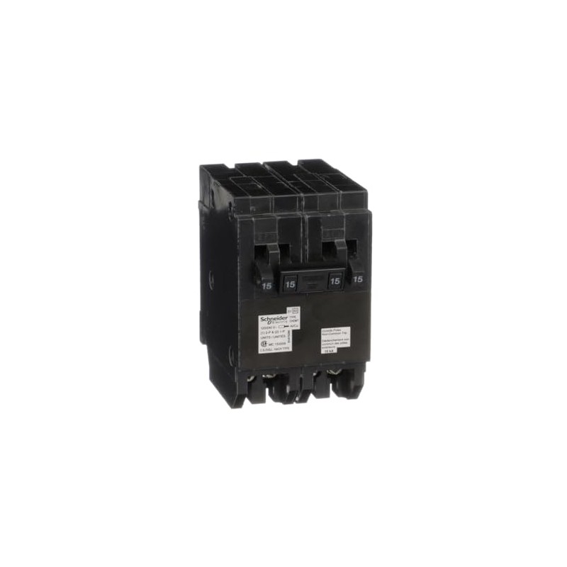 Schneider Electric - Homeline Quad Tandem Circuit Breaker, 2 x 1 Pole at 15A, 1 x 2 Pole at 15A, 120/240VAC, 10kA AIR, Plug-in, UL, HACR Rated Breaker Application, Screw Clamp Electrical Connection