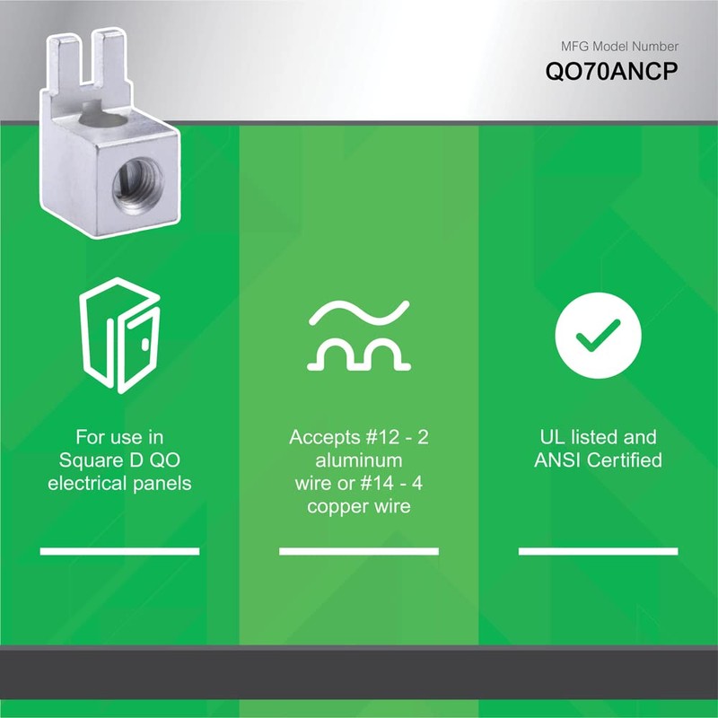 Square D - QO70ANCP Square D Qo70An Auxiliary Neutral Lug Kit, for Use with Load Centers, 100 A