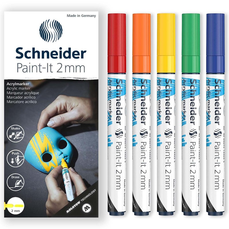 Schneider Paint-It 310 5 x 2mm Bullet Tip Acrylic Marker Pens - High Coverage - Red, Orange, Yellow, Green & Blue - Gift Boxed
