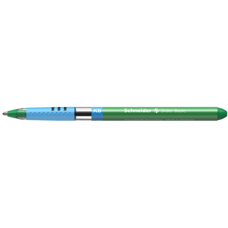 Schneider Slider Basic Kugelschreiber (Kappenmodell mit Soft-Grip-Zone, Strichstärke XB) 10er Pack, grün