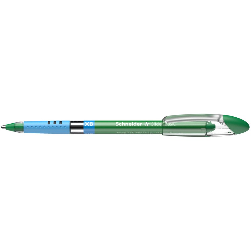 Schneider Slider Basic Kugelschreiber (Kappenmodell mit Soft-Grip-Zone, Strichstärke XB) 10er Pack, grün