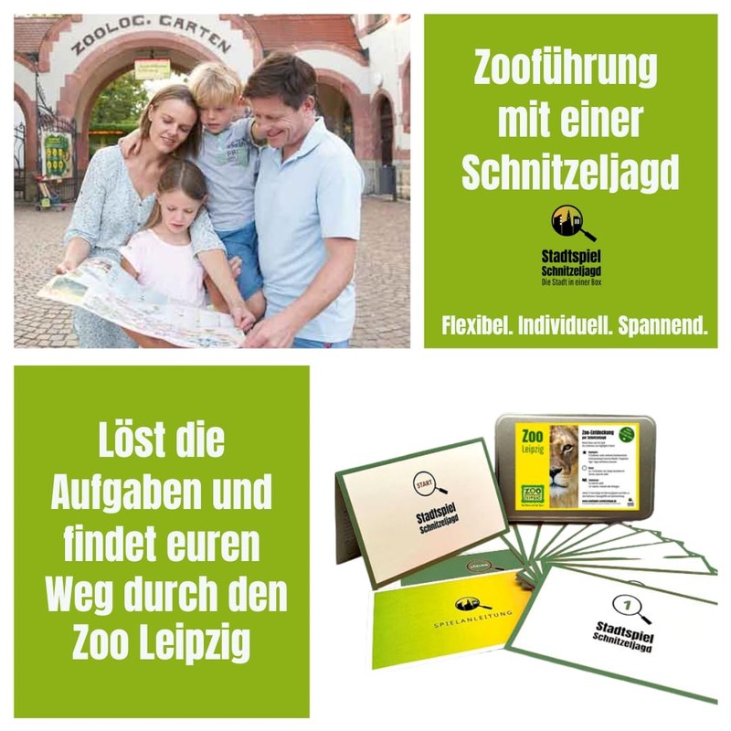 Das Stadtspiel Zoo Leipzig ist besonders für Familien geeignet. Perfekt auch als Erlebnisgeschenk für alle die, die schon alles haben! Verschenkt doch einfach einmal gemeinsame Zeit.