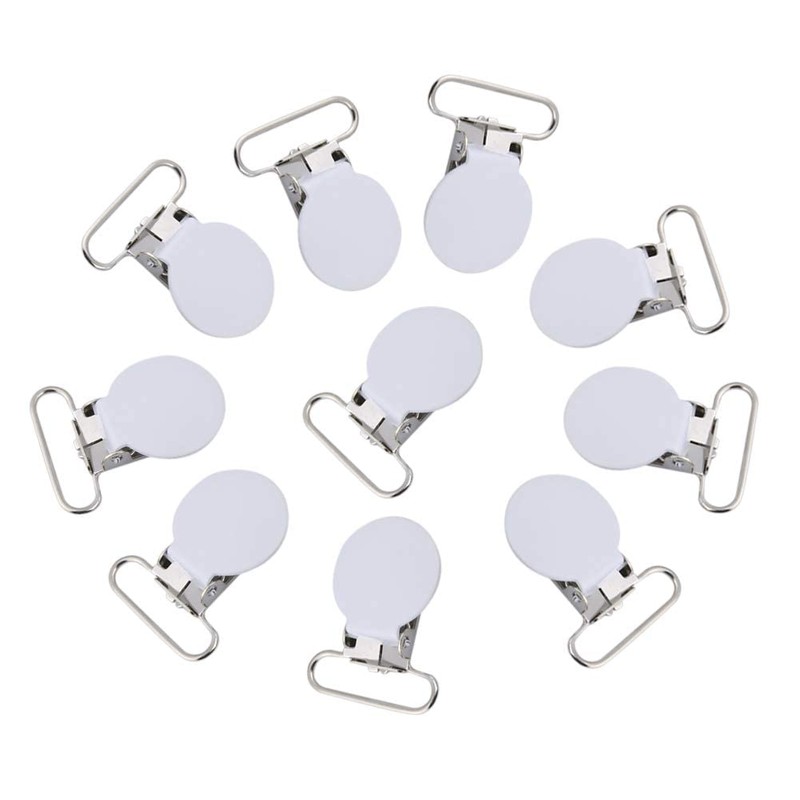Schnuller Clips, 10er Metall runden Hosenträger Snap Schnuller Strap Halter für DIY machen Leder Handwerk(Weiß)