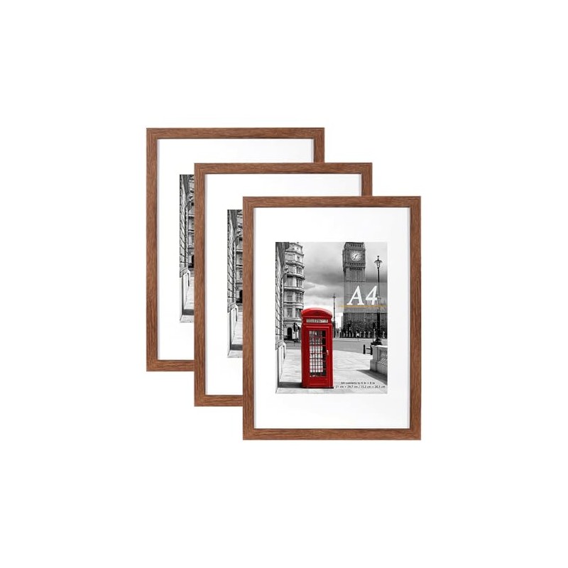 Scholar Tree Rustic Wood Picture Frame A4 with Mount,Set of 3,A4 Frame,A4 Picture Frame,A4 Poster Frame,Freestanding and Wall Mountable