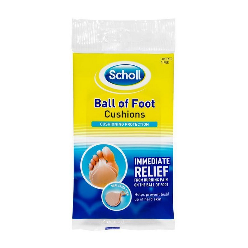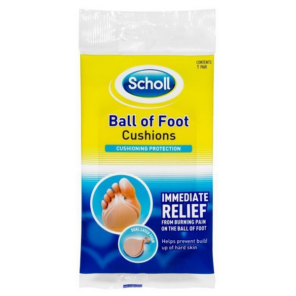 Scholl Ball Of Foot Cushions protection, gives immediate relief from burning pain on the ball of foot and helps prevent build up of hard skin.