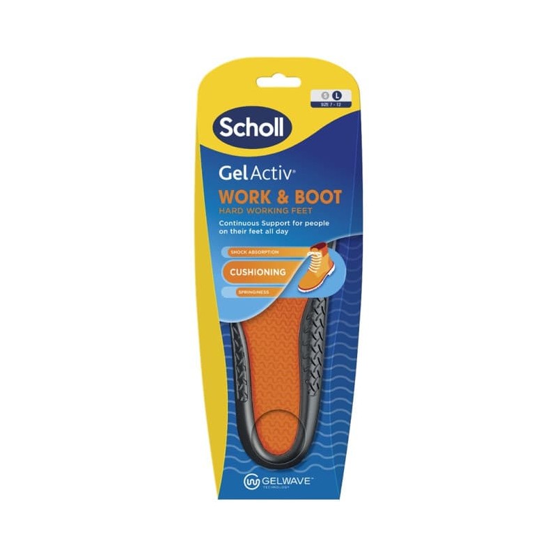 Scholl’s new Gel Activ® insole range are made with revolutionary Gel Wave™ technology, that act like tiny springs to absorb shock and new top cloth designs to keep feet odour-free ,dry and cool all day.